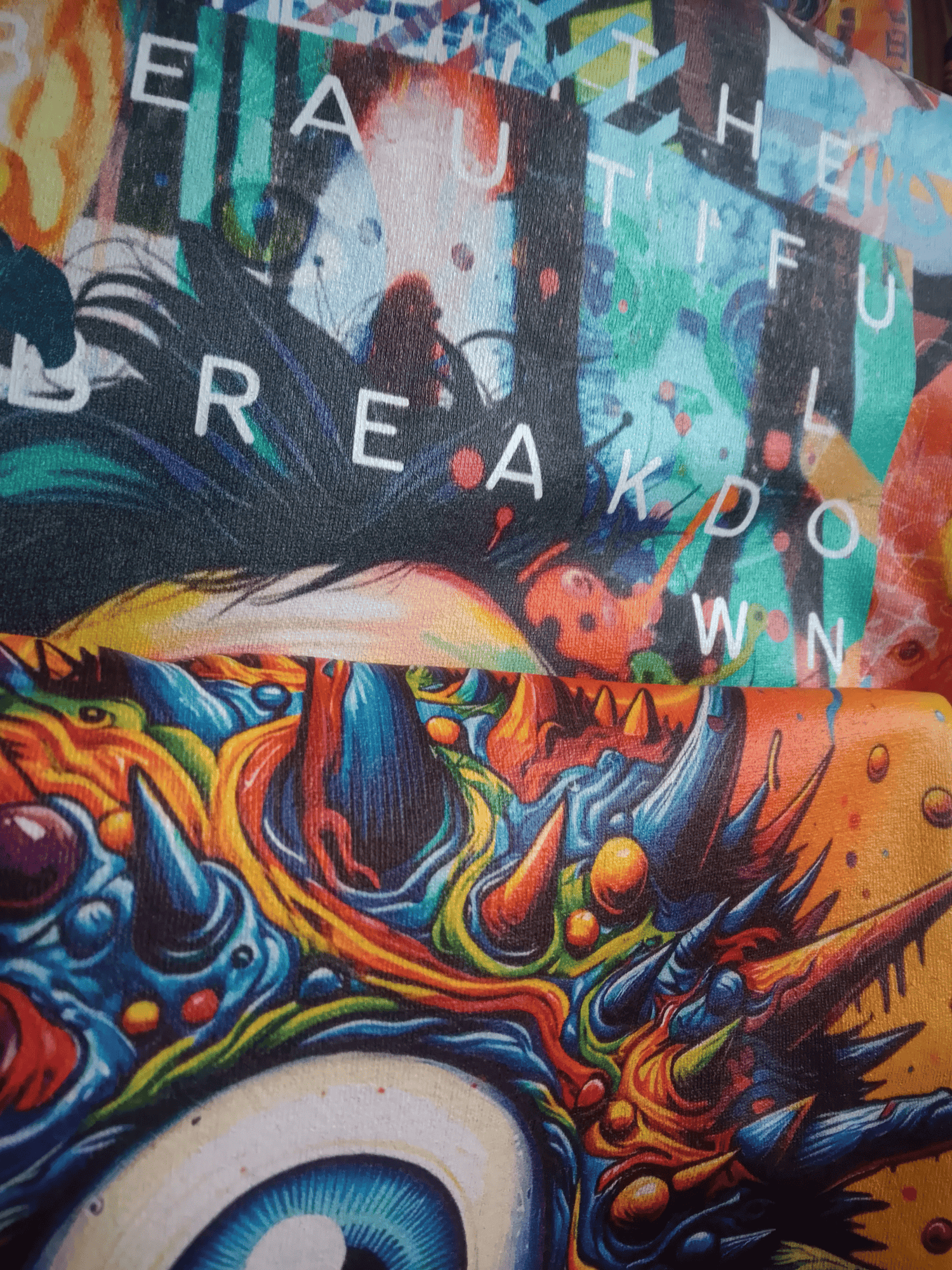 Our prints are high-definition, full-colour, and fused into the fibres — not sitting like a sticker on top. The result? Art that feels as soft as the shirt itself. No tack. No cheap sheen. Just seamless, enduring quality.